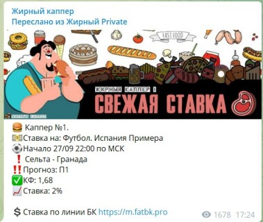 Канал Телеграм Жирный каппер с бесплатными ставками